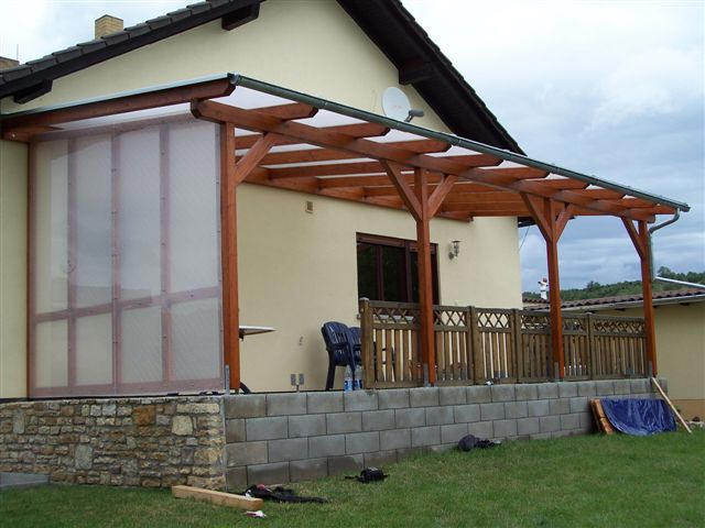 Verbindung zwischen seitenwand und markise über stabile klammern;